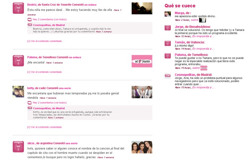 desarollo de entorno de red social dentro de la web del canal Cosmopolitan