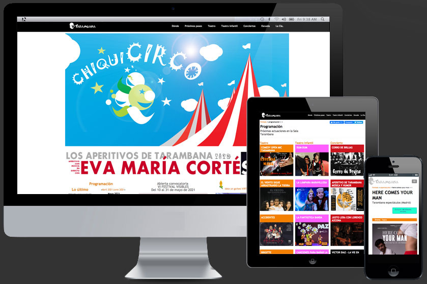 Desarrollo del sitio web www.tarambana.net a petición del cliente. Tizedit presentó los diseños de la página web y sus contenidos de esta sala de espectáculos ubicada en el madrileño barrio de Carabanchel.
